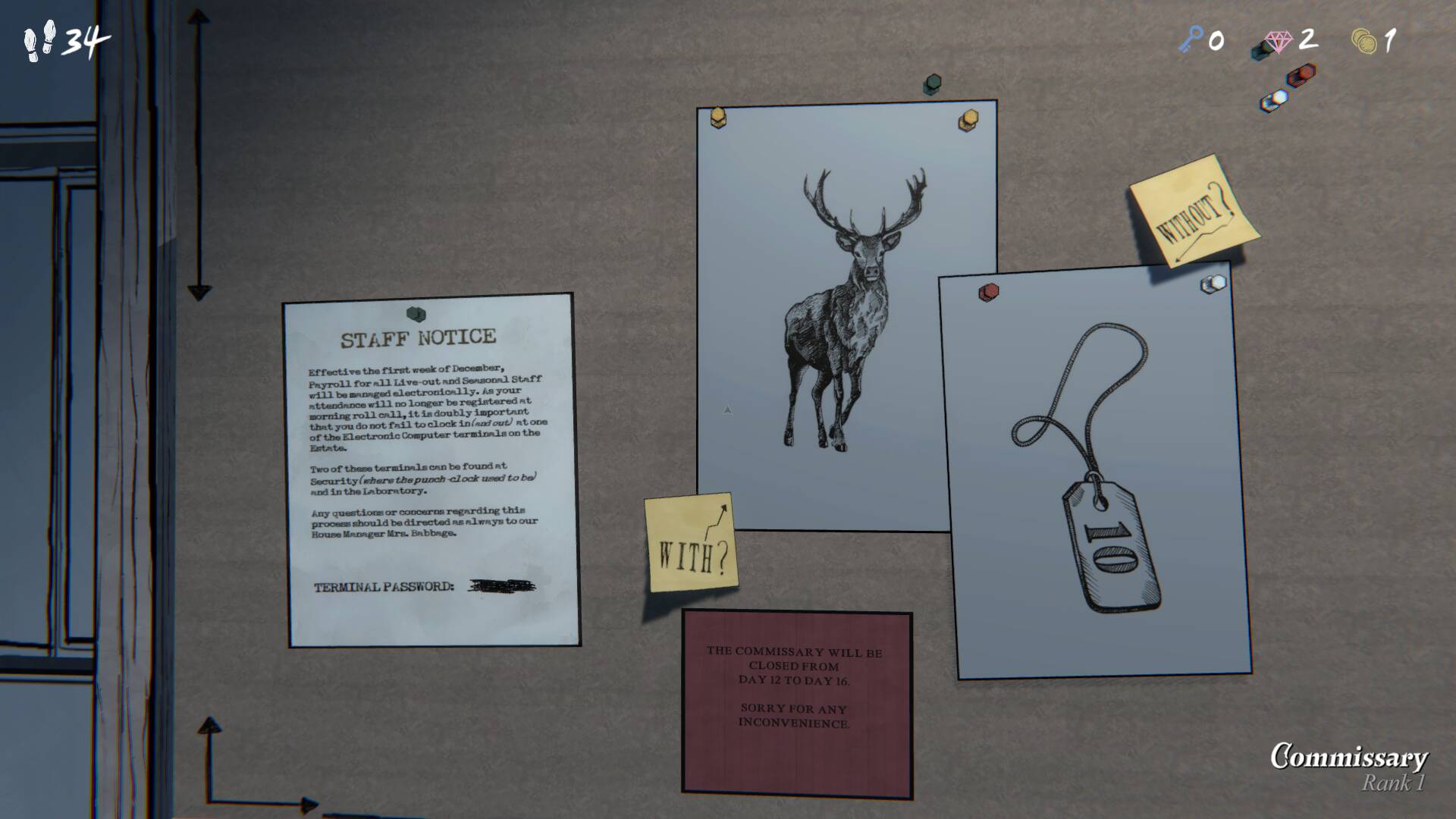 Le sound design fait une grosse partie du travail. On passe souvent de longs moments dans un silence presque pesant, avec seulement quelques bruits subtils du manoir qui ressortent. Des craquements, des pas, des portes… des petits détails qui renforcent l’ambiance feutrée et ce sentiment d’isolement pendant qu’on réfléchit.