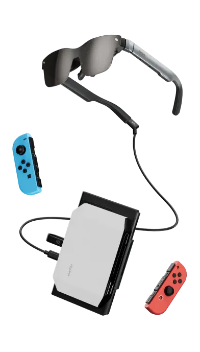 Elles prennent le signal vidéo de ton appareil (Switch via dock, PC, téléphone compatible) et l’affichent directement. Pas besoin d’installer un jeu ou une app juste pour “voir l’image” : si ton appareil envoie une sortie vidéo, les lunettes jouent le rôle d’un écran externe.